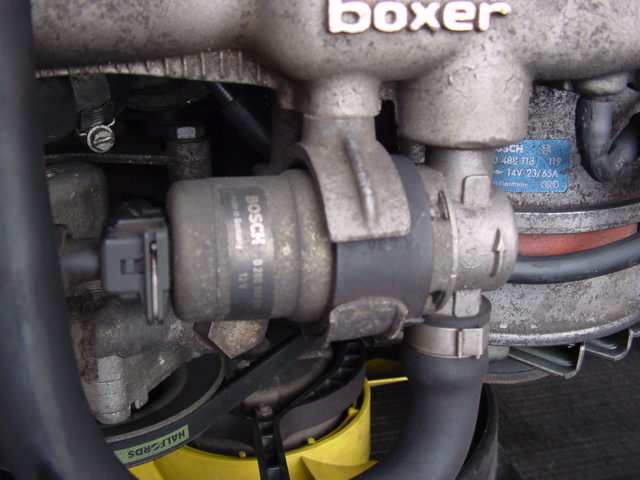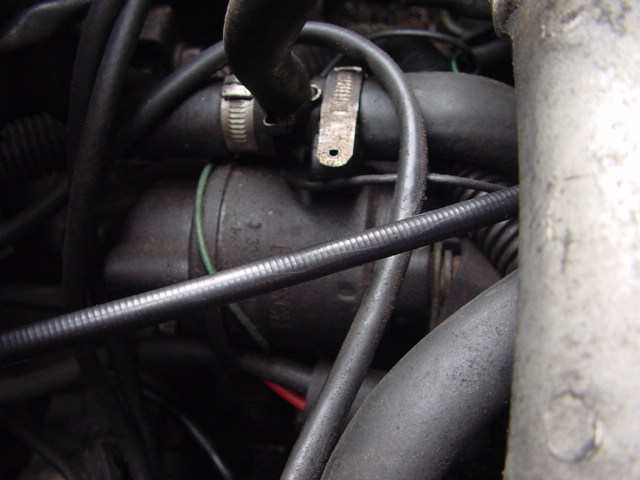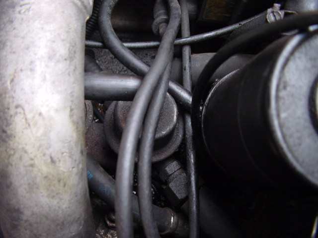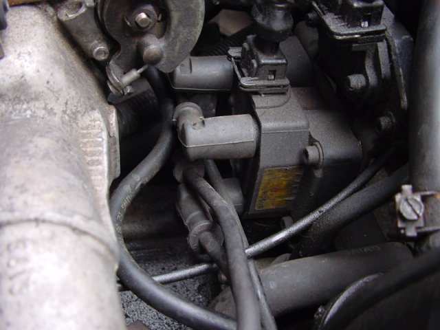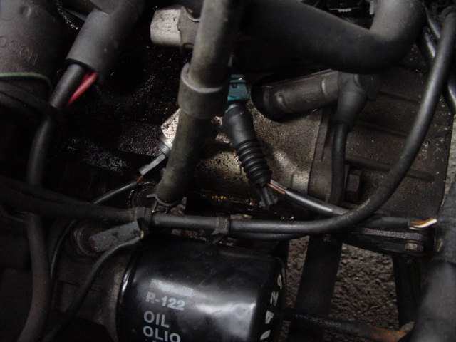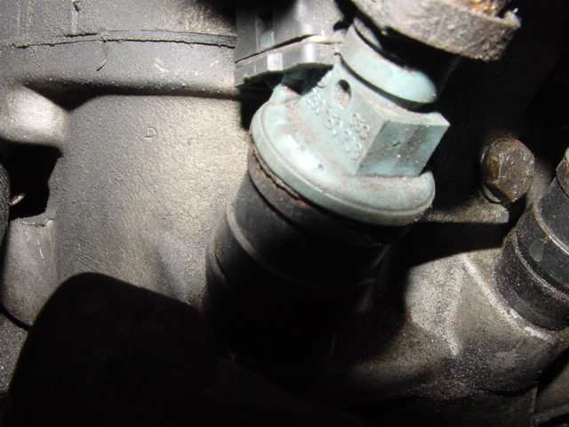 Here you can see the engine temperatur sensor, just about visable with the blue connector. Beside is there is the sensor for the oil preasure (to operate the warning light on the dashboard).