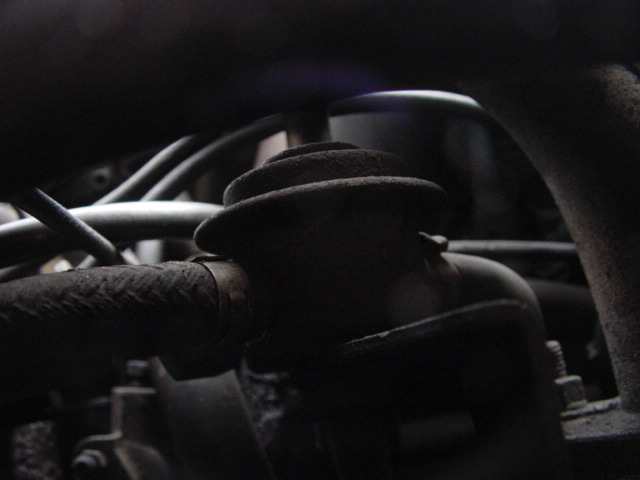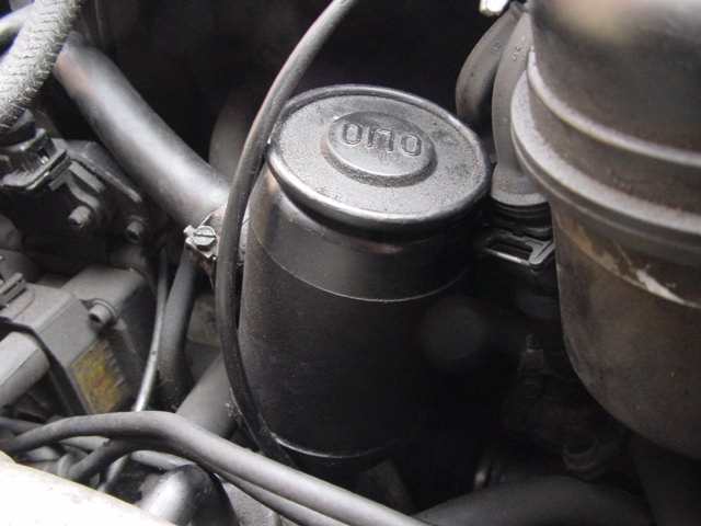 This is the vapour seperator. This allows excess preasure from the crankcases to be vented into the engines air intake. It contains what is basically a wire wool strainer to try and seperate any oil mist in the air from the crankcases, so that it can eventually return into the engine.